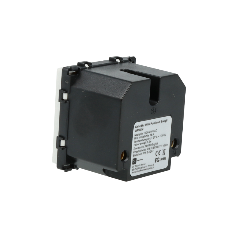 Wkład gniazdka został wyposażony w protokół Wi-Fi oraz funkcję pomiaru energii. Współpracuje z popularną aplikacją TUYA oraz Smart Life, umożliwiając sterowanie urządzeniami oraz zdalną obsługę za pomocą smartfona. Gniazdko jest częścią systemu DC Smart Home, który można dowolnie rozbudowywać i dostosowywać.
