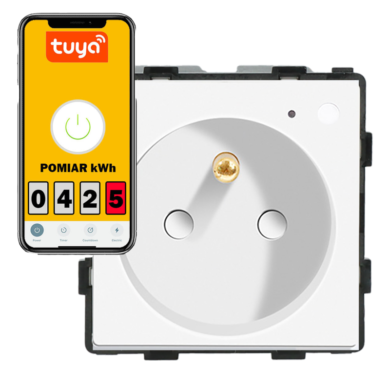 Moduł gniazda elektrycznego z bolcem 230V z pomiarem energii Wi-Fi biały