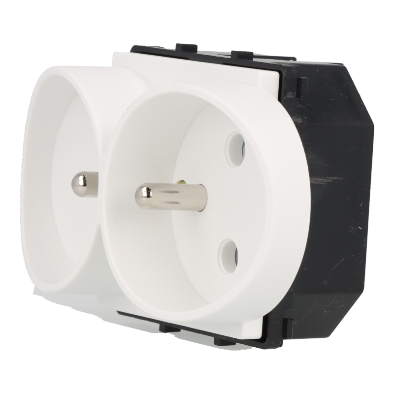 - Moduł Gniazdka 230V z bolcem podwójny biały - wygodne i funkcjonalne rozwiązanie.