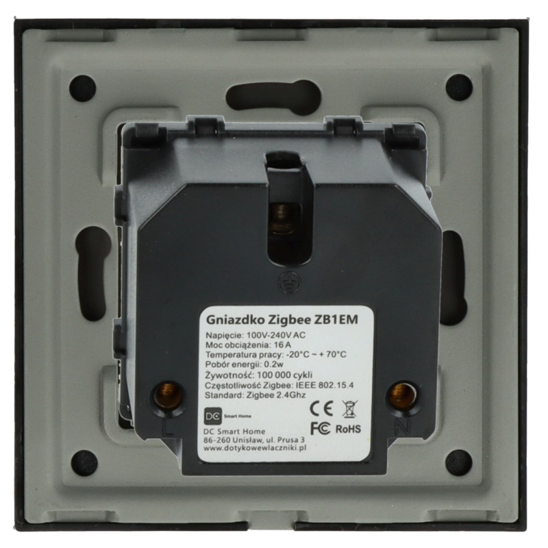 Gniazdo z ramką szklaną zostało wyposażone w protokół ZigBee 2.4GHz. Współpracuje z popularną aplikacją TUYA oraz Smart Life, umożliwiając sterowanie urządzeniami oraz zdalną obsługę za pomocą smartfona. Gniazdko jest częścią systemu DC Smart Home, który można dowolnie rozbudowywać i dostosowywać.