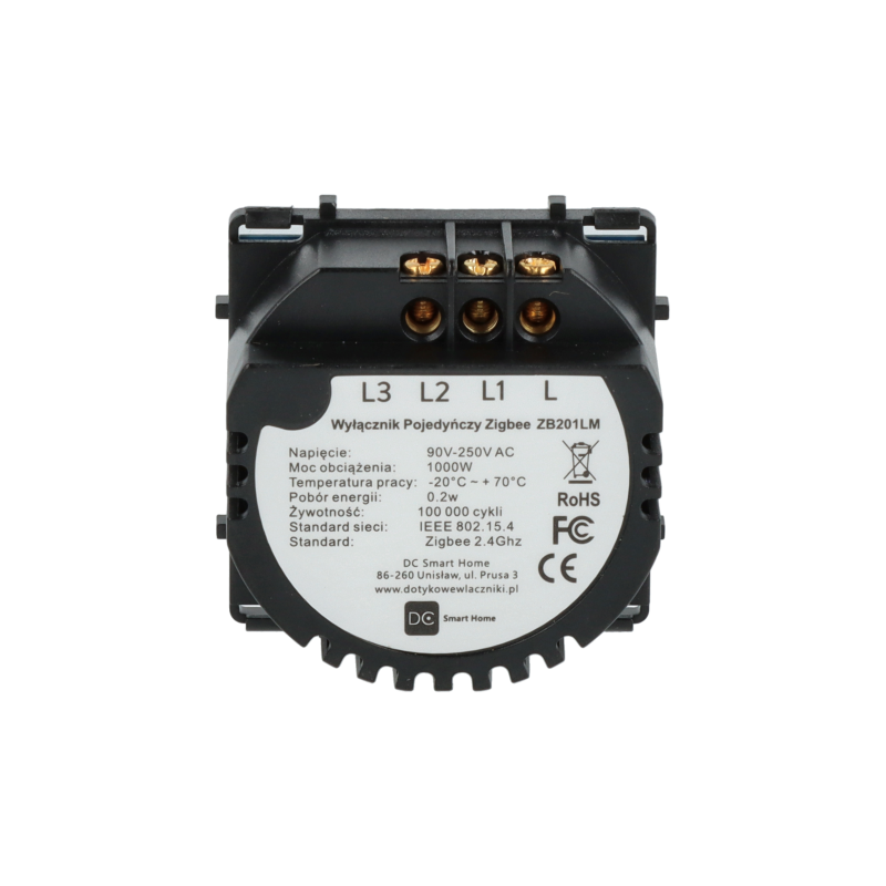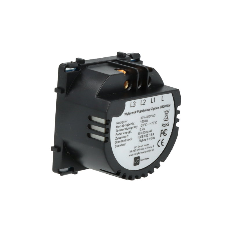 Wkład włącznika światła dotykowego DC Smart Home łączy się z bramką ZigBee 2.4GHz. Moduł łącznika jest kompatybilny w wszystkimi naszymi panelami szklanymi DC Smart Home.