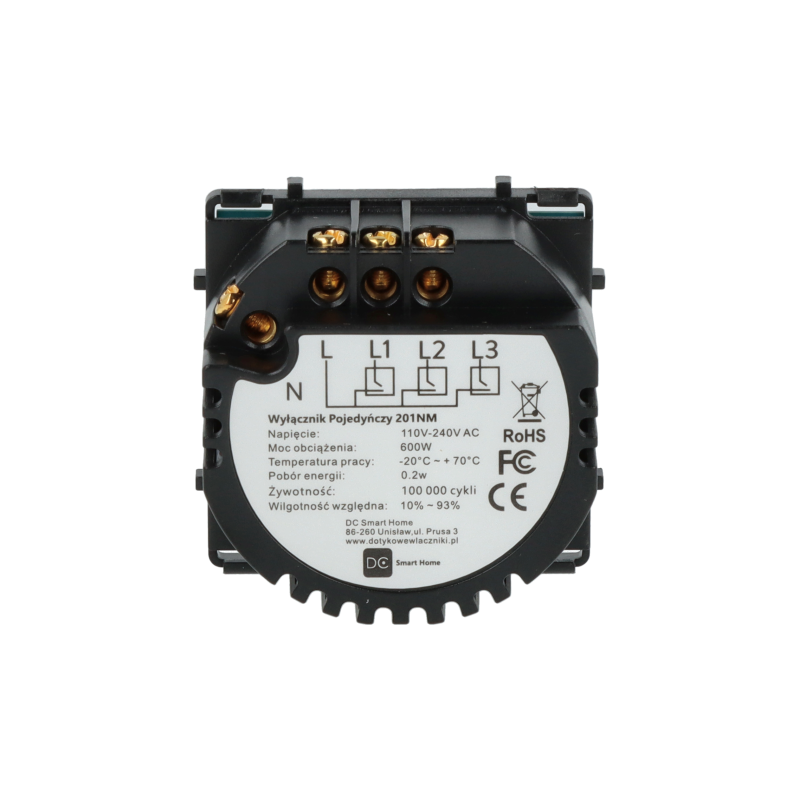 Wkład włącznika światła dotykowego DC Smart Home pasuje do wszystkich standardowych puszek elektrycznych. Dzięki temu, montaż modułu jest prosty i szybki, nie wymagający żadnych dodatkowych adaptacji.
