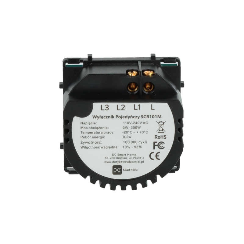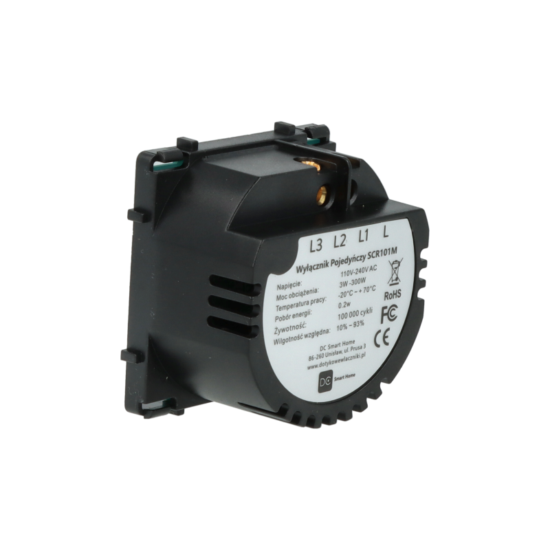 Wkład włącznika światła dotykowego DC Smart Home pasuje do wszystkich standardowych puszek elektrycznych. Dzięki temu, montaż modułu jest prosty i szybki, nie wymagający żadnych dodatkowych adaptacji.