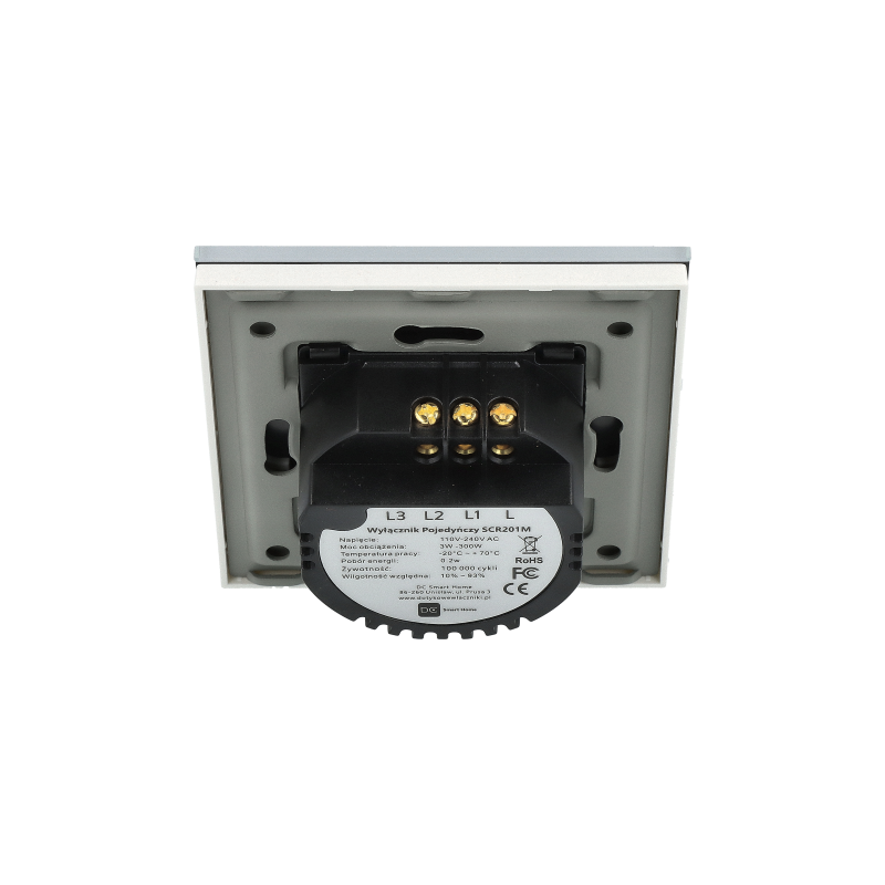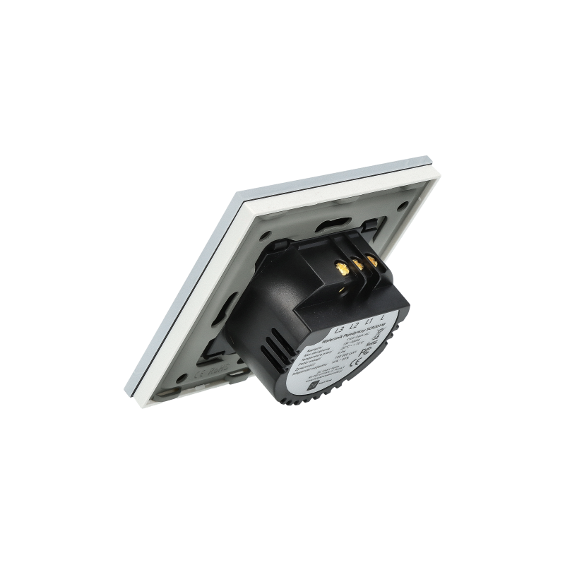 - Panel Szklany: Jest to zewnętrzna część włącznika, wykonana z eleganckiego, trwałego szkła hartowanego. Panel ten ma powierzchnię dotykową, która reaguje na dotyk użytkownika, umożliwiając kontrolę oświetlenia.