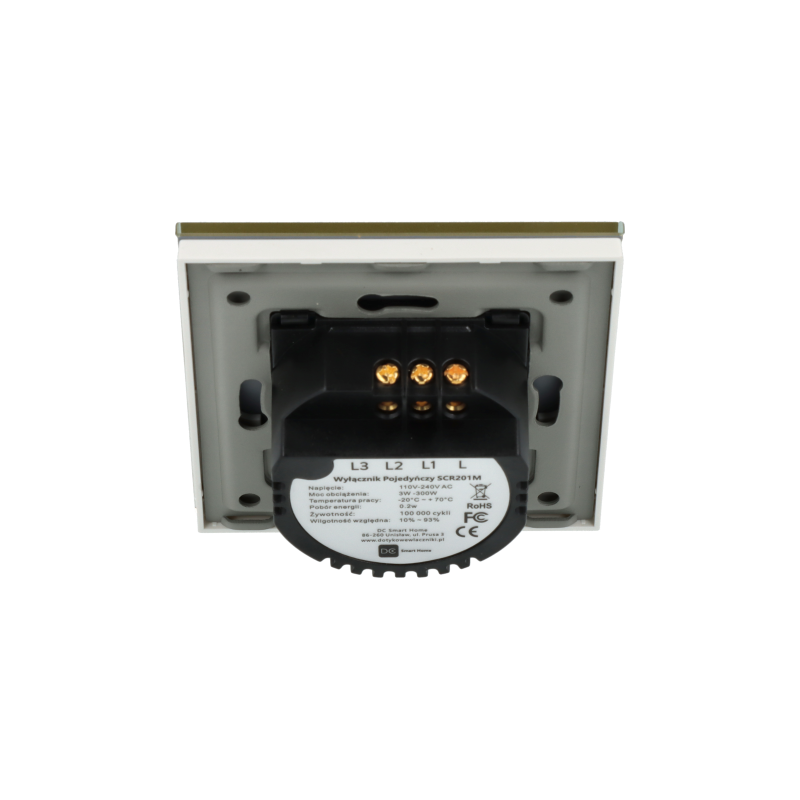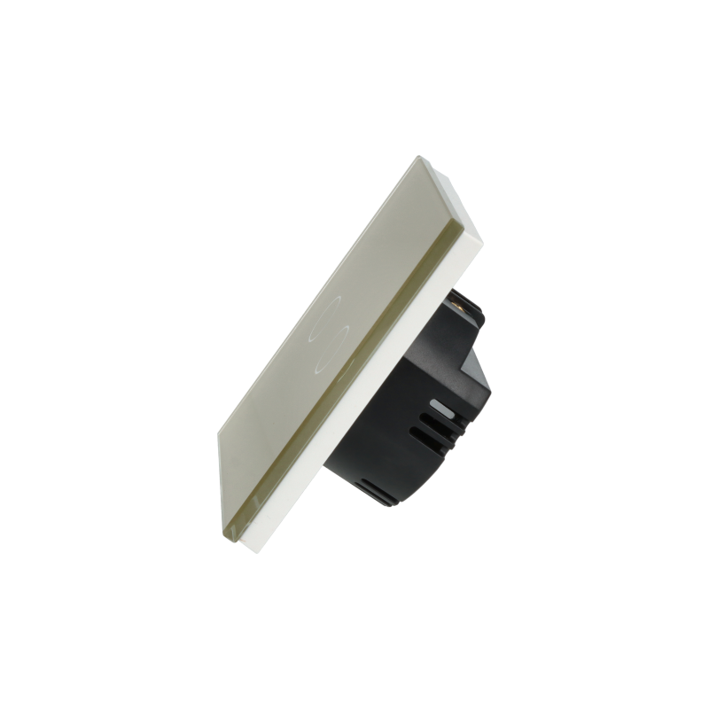 - Panel Szklany: Jest to zewnętrzna część włącznika, wykonana z eleganckiego, trwałego szkła hartowanego. Panel ten ma powierzchnię dotykową, która reaguje na dotyk użytkownika, umożliwiając kontrolę oświetlenia.