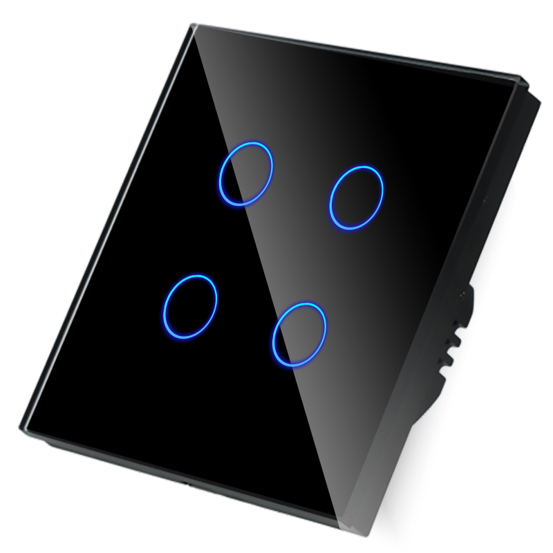 Włącznik dotykowy Poczwórny Czarny firmy DC Smart Home to nowoczesne i eleganckie rozwiązanie do sterowania oświetleniem w Twoim domu, biurze czy hotelu. Stworzony z myślą o wygodzie i stylu, ten inteligentny wyłącznik dotykowy pozwala Ci włączać i wyłączać światło jednym dotknięciem palca, dodając nowoczesności każdemu wnętrzu. Elegancja i inteligencja w jednym - sterowanie oświetleniem z DC Smart Home