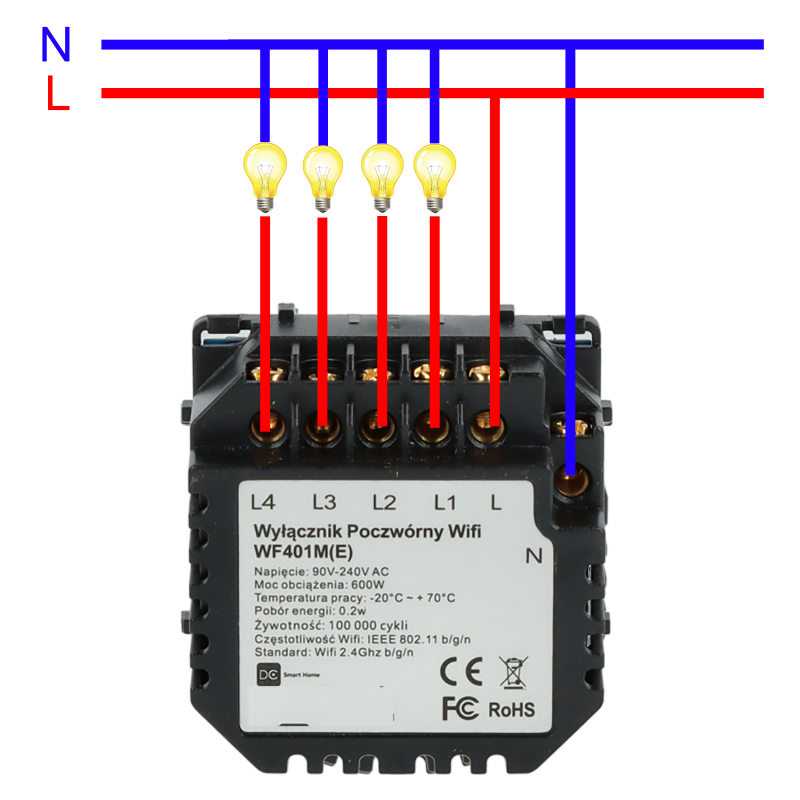 - Moduł łącznika światła dotykowy wifi + BL poczwórny