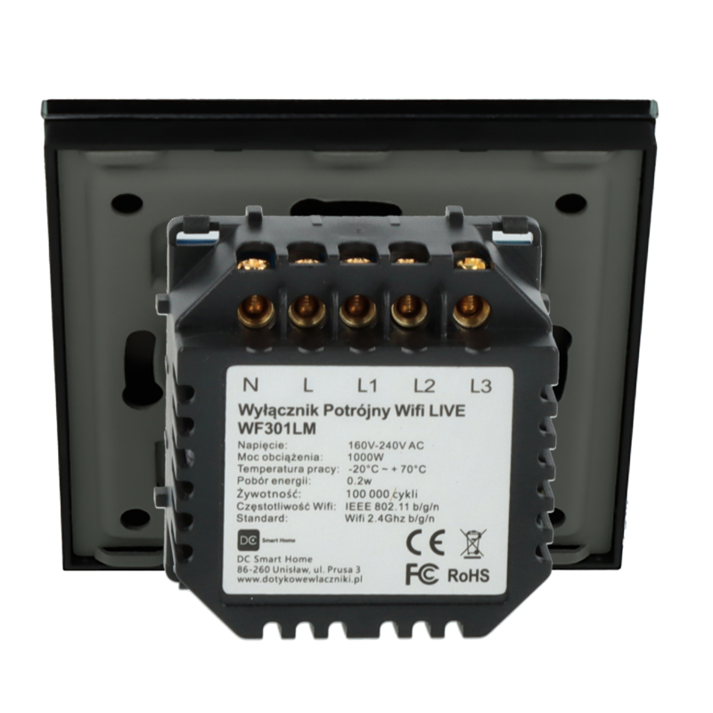 Włącznik dotykowy potrójny Wi-Fi Czarny Only Live Line Bez N