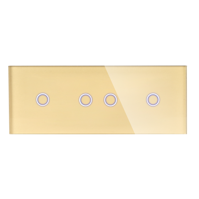 Panel szklany Potrójny Złoty, przeznaczony do modułów włączników światła dotykowych dostępnych w naszym sklepie, to elegancka i stylowa opcja, która doda klasy i nowoczesności Twoim wnętrzom. Wykonany z wysokiej jakości materiałów, panel posiada wiele zalet, takich jak: