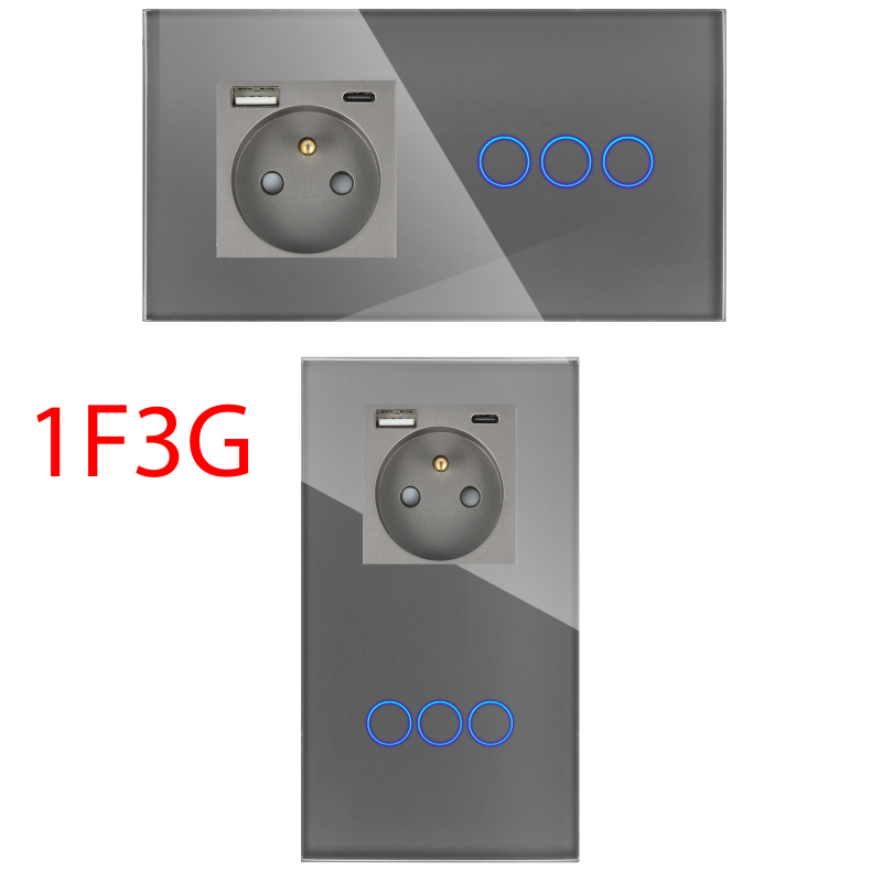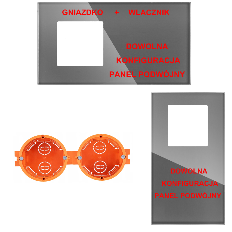 Panel Szklany Podwójny Na 2 Puszki 1F0G Szary DC Smart Home